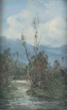 Vittore Antonio Cargnel Venezia 1872 - Milano 1931 STRADA IN COLLINA olio su cartone pressato, cm 19,5X12. Firmato in basso a destra: V.A. Cargnel