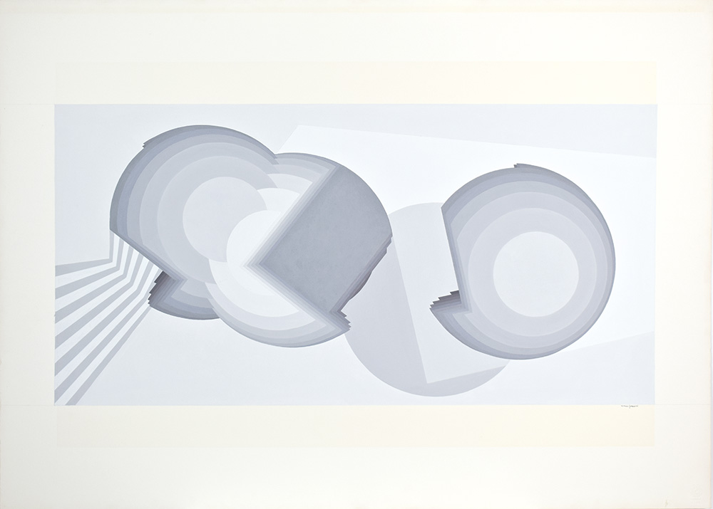 ROMANO PERUSINI (Pozzo di Codroipo (Ud) 1939), Integralienazione 8, (seconda metà anni '60) tempera e collage su cartone schoeller , 73,3x102,3 firma in basso a destra, firma e titolo al retro