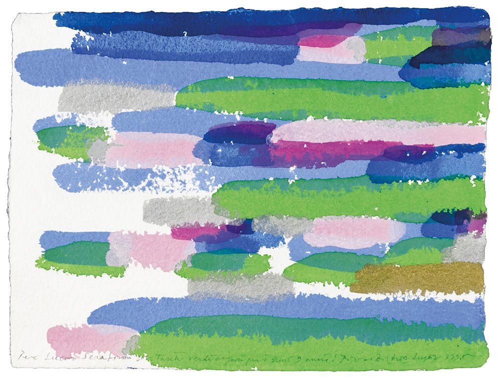 PIERO DORAZIO (Roma 1927 - Perugia 2005), In Tagliamento, 1995 tecnica mista su cartoncino, 21x28 firma data e dedica ad personam in basso acquisito dall'attuale proprietario direttamente dall'Artista