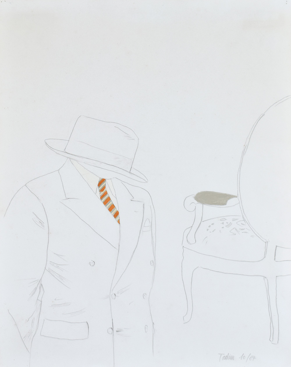 EMILIO TADINI (Milano 1927 - 2002) L'uomo dell'organizzazione, 1967 tecnica mista su carta, 56x45 firma e data in basso a destra provenienza: Studio Marconi Milano - etichetta al retro