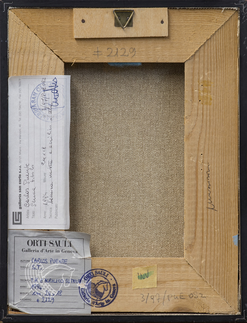 Etichetta e timbro della Galleria d'Arte San Carlo (MI) al retro