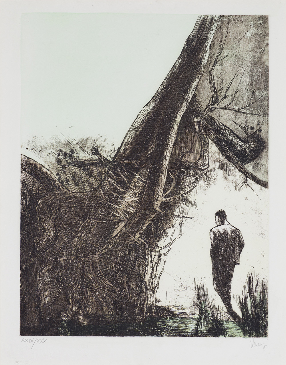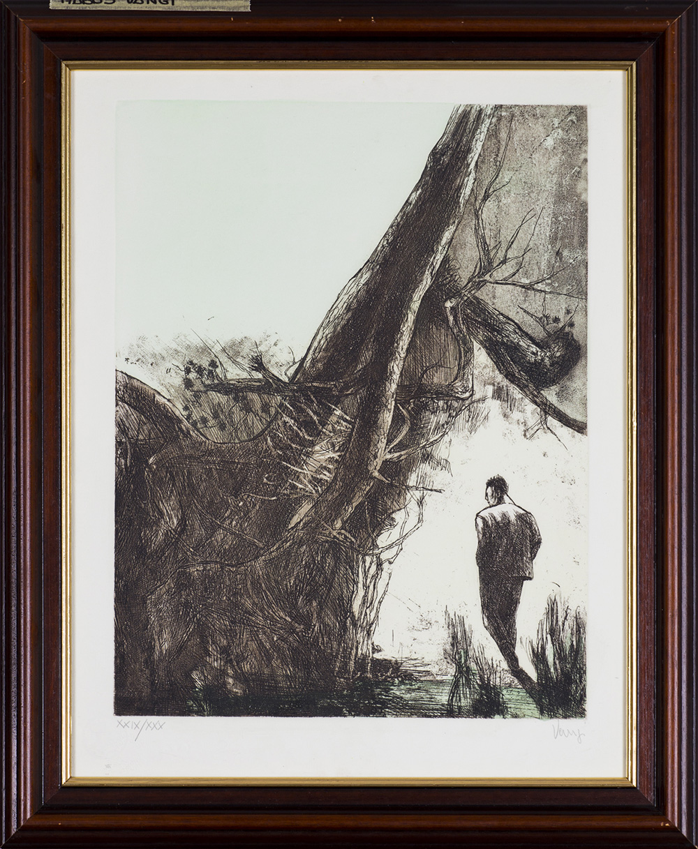 GIULIANO VANGI (1931)Radici e uomo con le mani in tasca, 2000Incisione,...