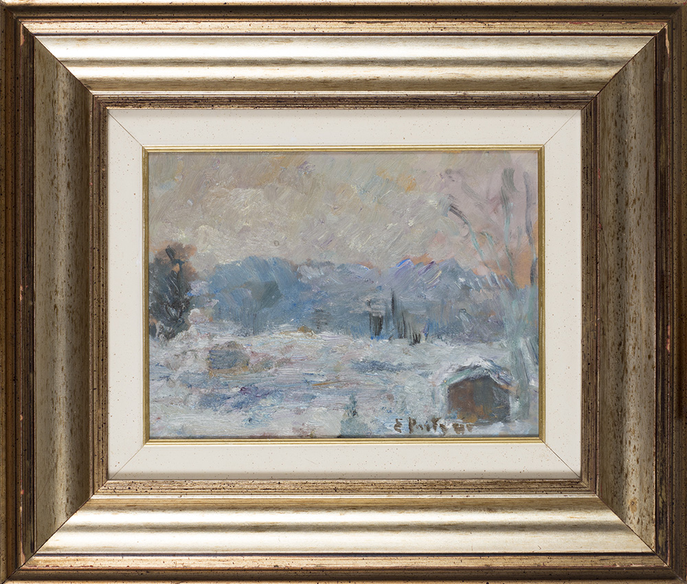 Lotto 129 | EZIO PASTORIO (1911-2006)NevicataOlio su tavolacm 20x26Firma al fronteFirma e...