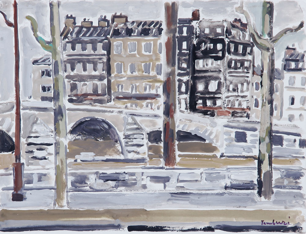ORFEO TAMBURI Jesi (An) 28/05/1910 - Parigi (Francia) 15/06/1994 - Alberi al Pont Royal, 1968, tempera su carta cm. 23x30,5; firma in basso a destra.