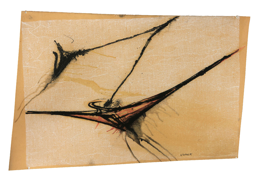 Gilberto ZORIO (Andorno Micca 1944-09-21 ) Canoa 1991 tecnica mista su cartoncino cm. 44 x 64Firma, data "G. Zorio, 91" (in basso a destra) Etichetta della Galleria Cesarea, Genova (al retro)
