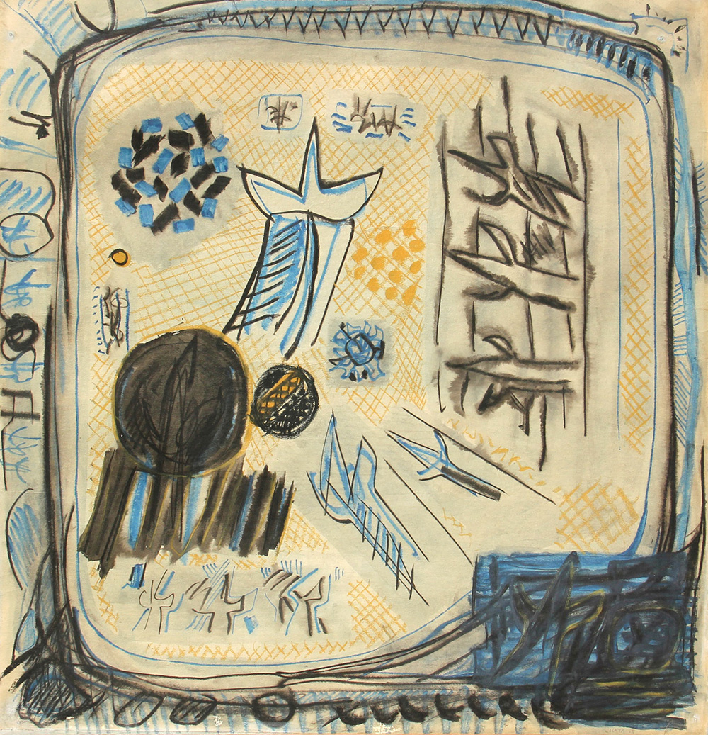 Riccardo LICATA (Torino 1929-12-20 Venezia, 2014 ) Composizione 2 1960 tecnica mista su carta intelata cm. 80 x 80Firma, data "Licata, 60" (in basso a destra) Etichetta e timbro della galleria La Maggiolina, Alessandria (al retro)
