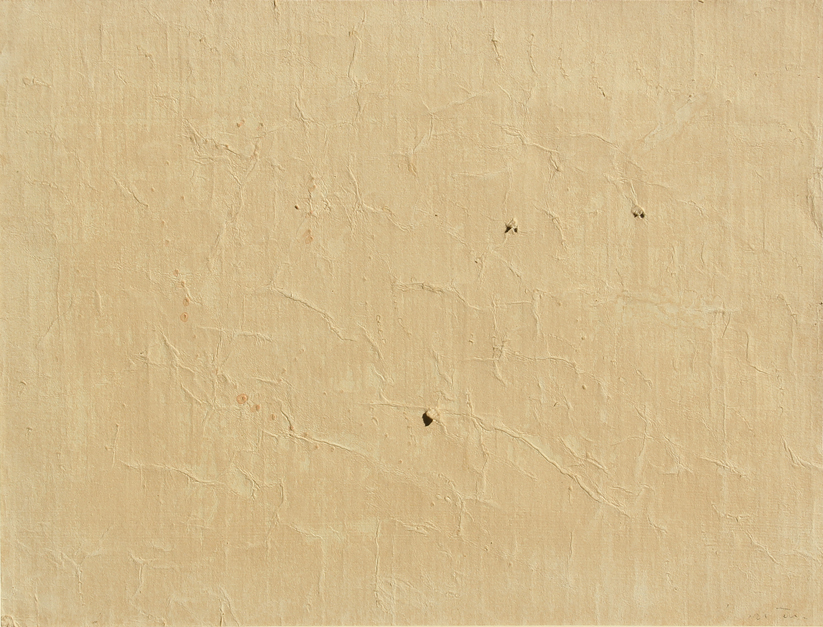 Lucio FONTANA (Rosario Santa Fè 1899-02-19 Varese 1968-11-06) Concetto spaziale 1951 graffiti e buchi su carta assorbente bianca intelata cm. 46 x 60L.M. Barbero "Lucio Fontana - catalogo ragionato delle opere su carta", tomo II, ed. Skira, p.569, rif. 51DPS41Firma "L. Fontana" (in basso a destra) Opera impropriamente incollata su tela con la conseguenza di danneggiamenti. Autentica della Fondazione Lucio Fontana con numero 2423/2