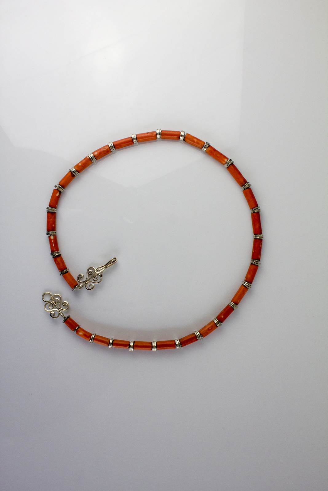 [Nessun Autore] Silver and coral necklace. 60 cm approx. . .