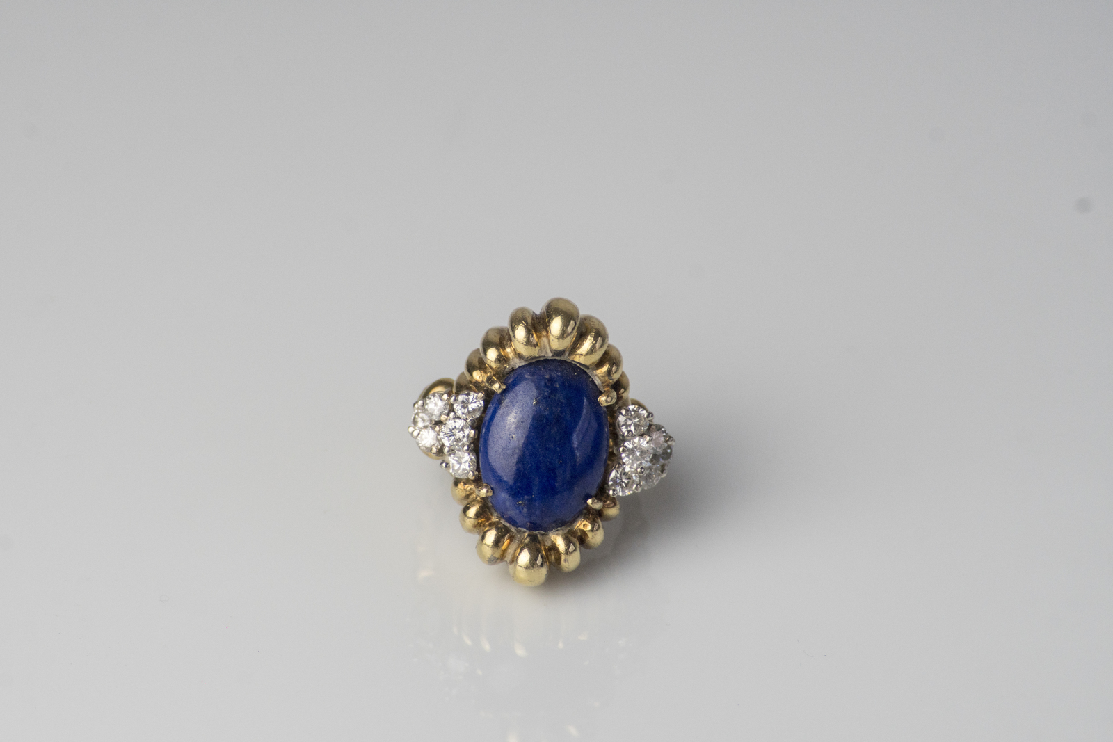 Anello in oro giallo 18kt, gr 16.15. Diamanti cts 0.72. e lapislazuli. . . ....