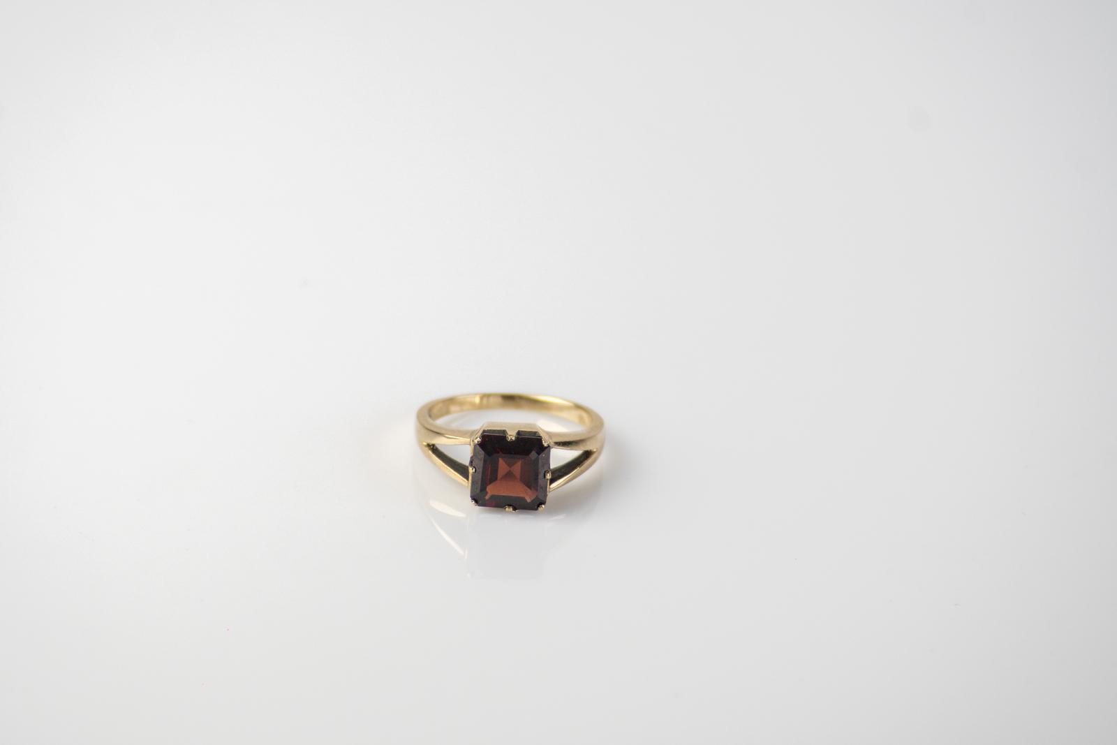 [Nessun Autore] 9kt yellow gold ring with garnet. . .