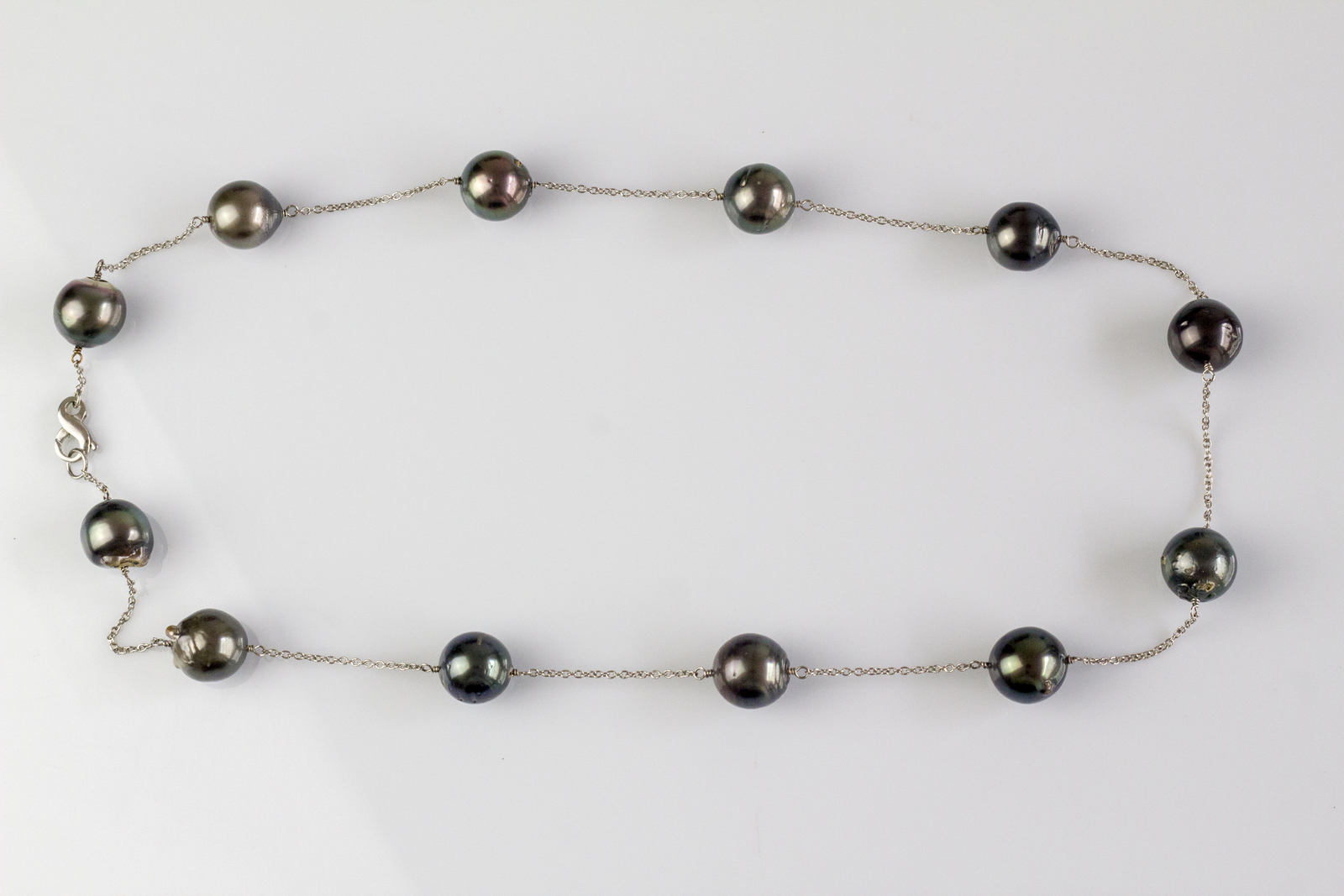 Collana in oro bianco 18kt con perle thaiti di 14mm. . .
