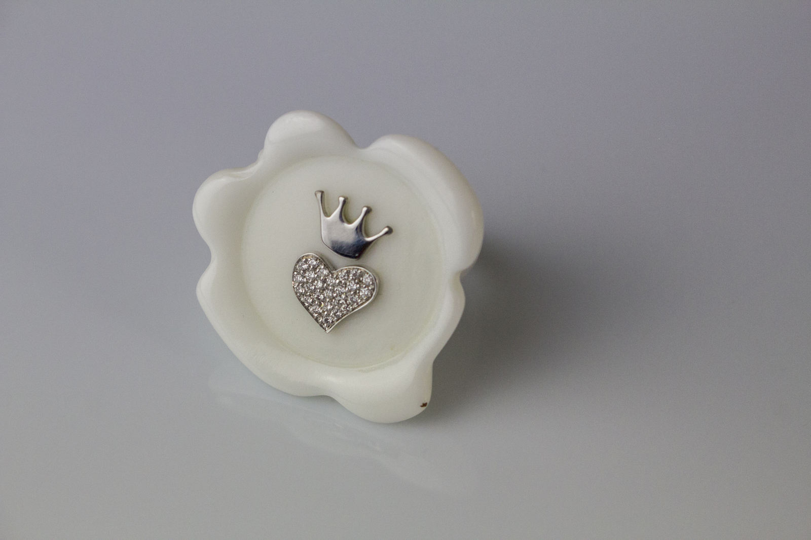 Anello in ceramica bianca e oro bianco, gr 2.50. Diamanti cts 0.30. Firmato leaderline. . .