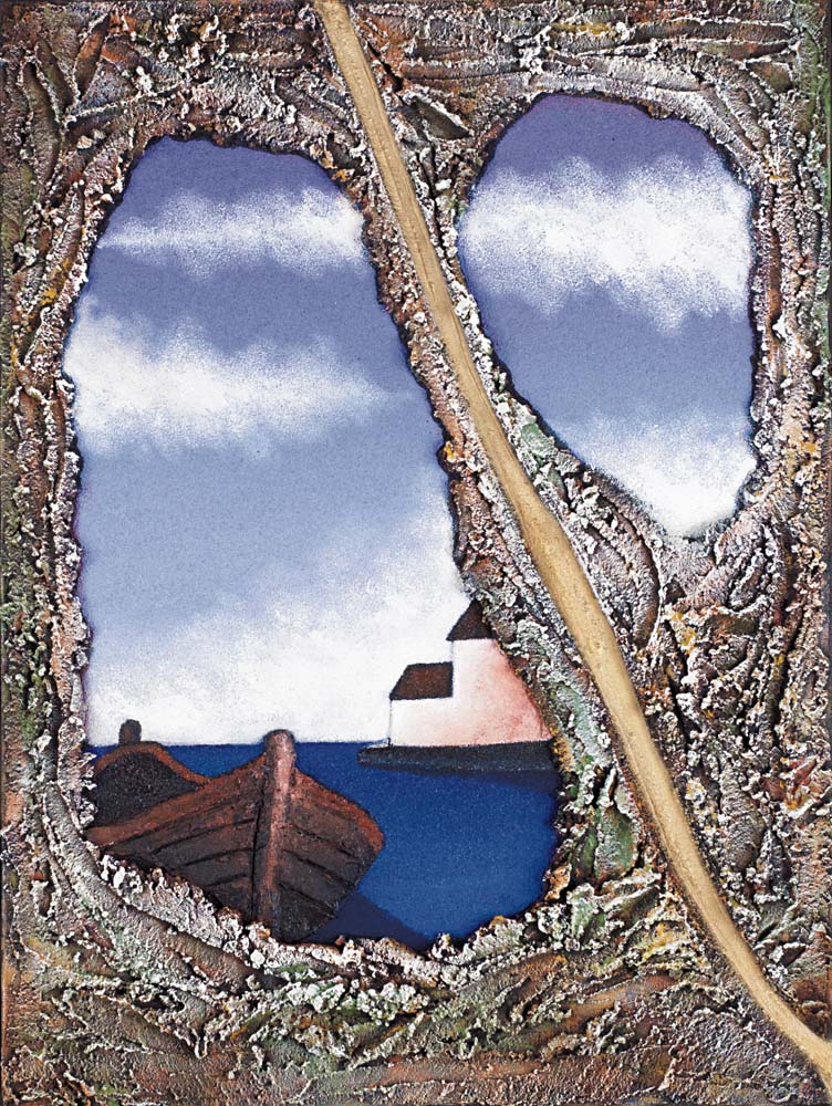 MARIO PASCHETTA Milano 27/04/1949 - Barca al porto, 1998, malte e terre naturali su tela cm. 60x45, firma, titolo e anno al retro, dichiarazione d'autenticità e archivio numero 293 dell'artista su foto, pubblicato sul catalogo della mostra "Mario Paschetta La mia Toscana" a cura di Lucio Barbera, Edizioni Cinquantasei, tenutasi dal 31 luglio al 20 settembre 1999 presso la Torre Normanna, Castello di Altomonte, Festival Mediterraneo dei Due Mari e dal 28 agosto al 16 settembre 1999 presso la Galleria d'Arte Cinquantasei (Desenzano del Garda), pagina 76.