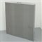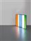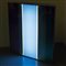 Alluminio piegato e lucidato, acciaio cromato, specchio semitrasparente, sorgente luminosa interna a fluorescenza.