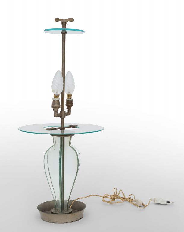 FONTANA ARTEUna lampada da tavolo, 1936. Metallo argentato, cristalli...