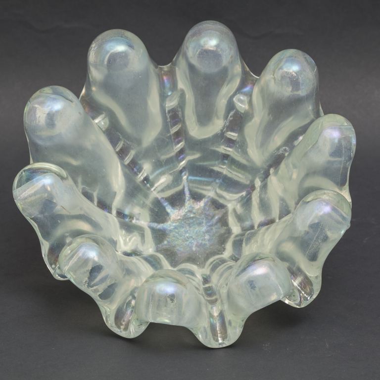 Pesante vetro trasparente fortemente iridato.
