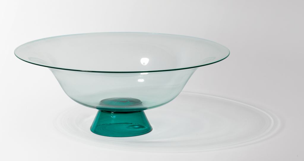 TOMMASO BUZZI, VENINIUna coppa in vetro trasparente verdino con base in vetro...