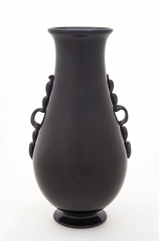 NAPOLEONE MARTINUZZI, VENINI. Un vaso in vetro nero, modello 3290, 1930....