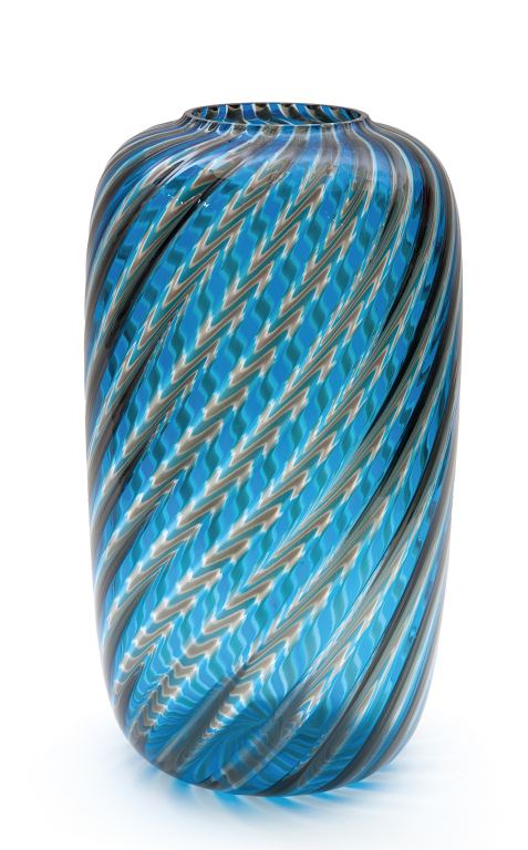 VENINI Un vaso a canne diagonali, anni "70. Marca incisa "venini italia"....
