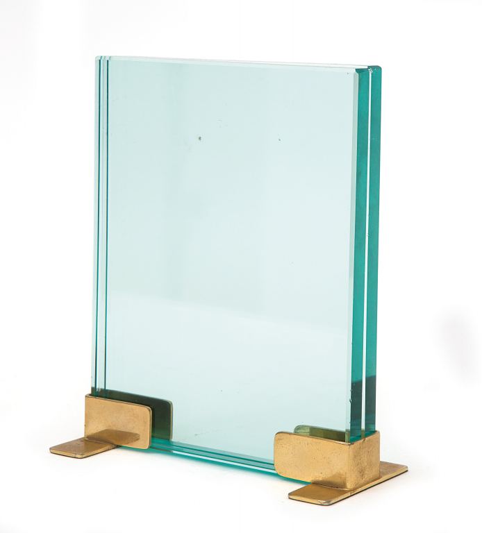 UN PORTARITRATTI, anni '60. Lastre di cristallo molato, ottone. Cm 18 x 14.
