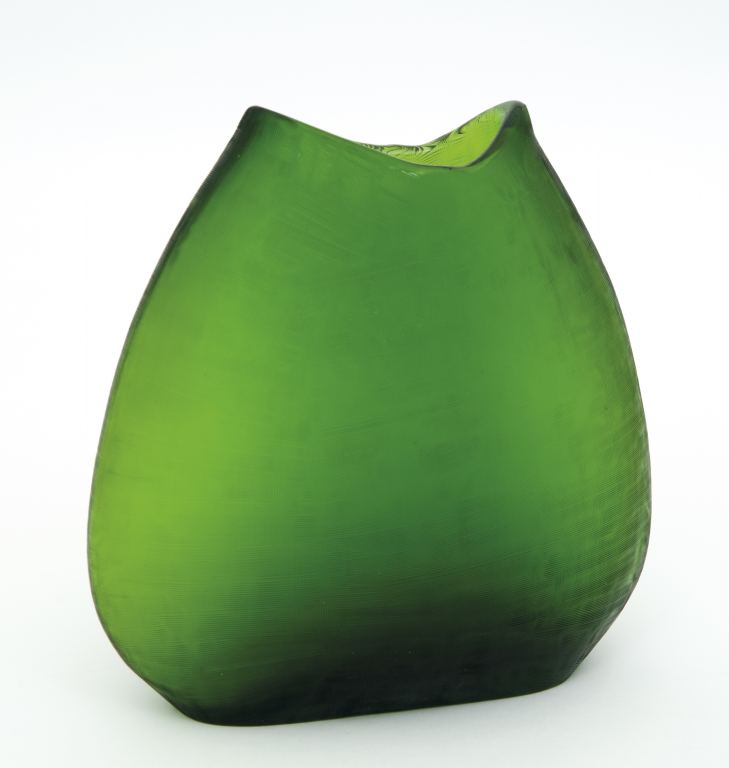 MURANO, anni "70. Un vaso in vetro verde con superficie zigrinata. Altezza cm...