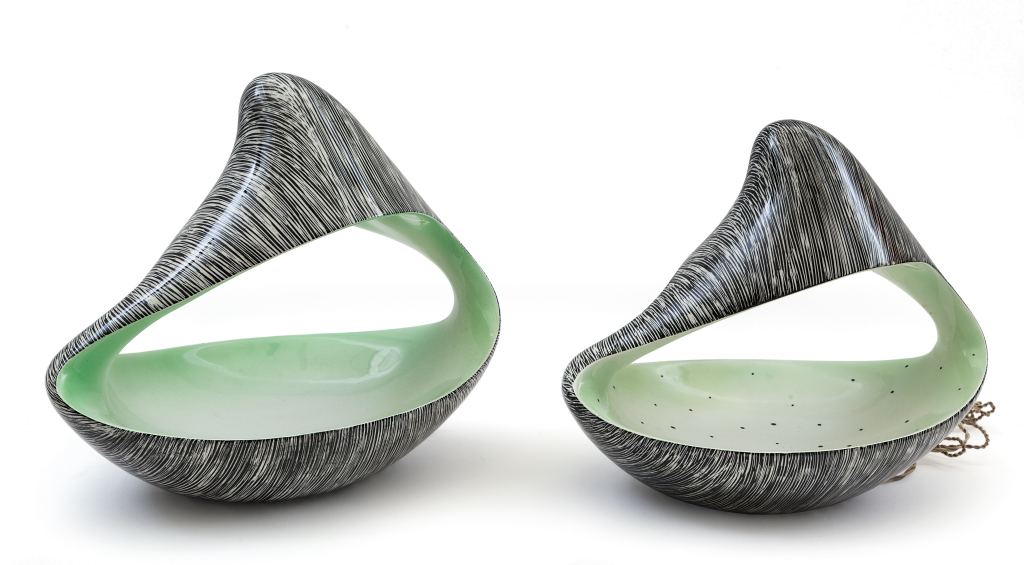 ARIELE, Torino Due lampade da tavolo, anni "50. Ceramica decorata. Marcate...