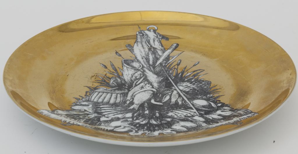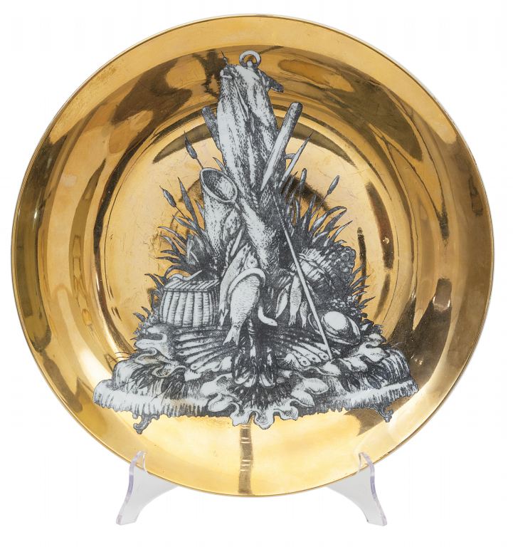 PIERO FORNASETTI Un piatto "Panoplie 2", anni '50. Porcellana dcorata....