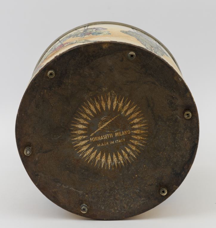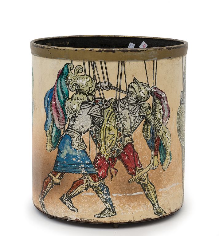 PIERO FORNASETTI Un cestino gettacarte, anni "50. Lamierino serigrafato,...