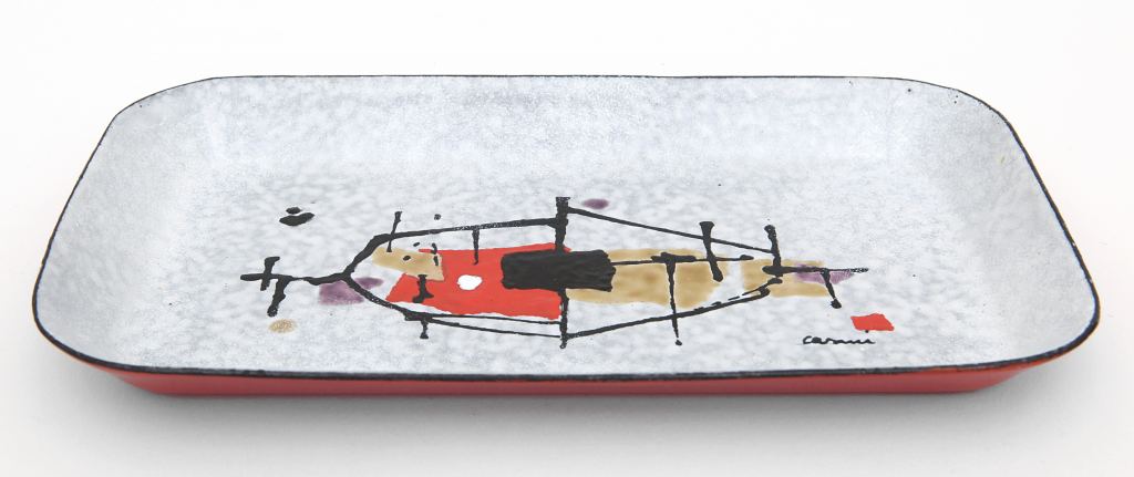 EUGENIO CARMI un vuotatasche, anni "60. Lamierino smaltato. Marcato...