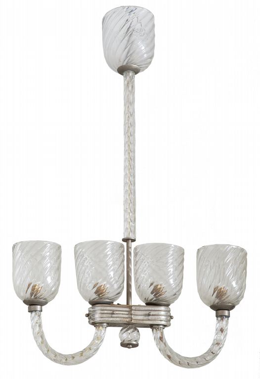 BAROVIER & TOSO Un lampadario, anni '40. Vetro ritorto, metallo nichelato. Cm...