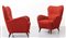 Lotto 4230 | DUE POLTRONE, anni "50. Struttura e gambe in legno, imbottiture rivestite in...