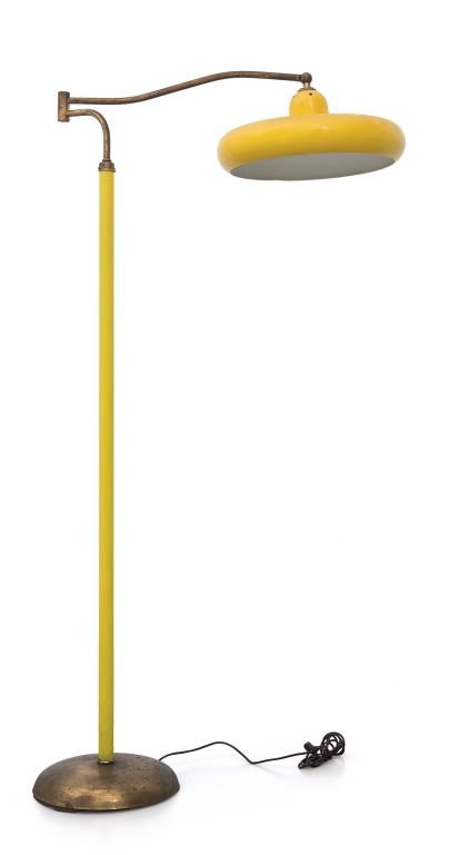 UNA LAMPADA DA TERRA, anni "50. Ottone, tubo di ferro verniciato, alluminio...