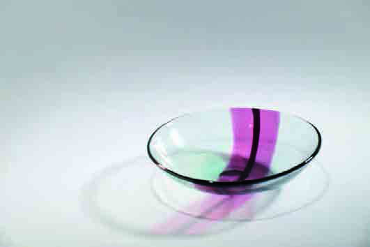 Carlo Scarpa Piatto in vetro a fasce applicate con doppia fascia centrale nei toni del viola, 1940 circa. Firma incisa: Venini Murano Italia, cm 5x25,5x20,5