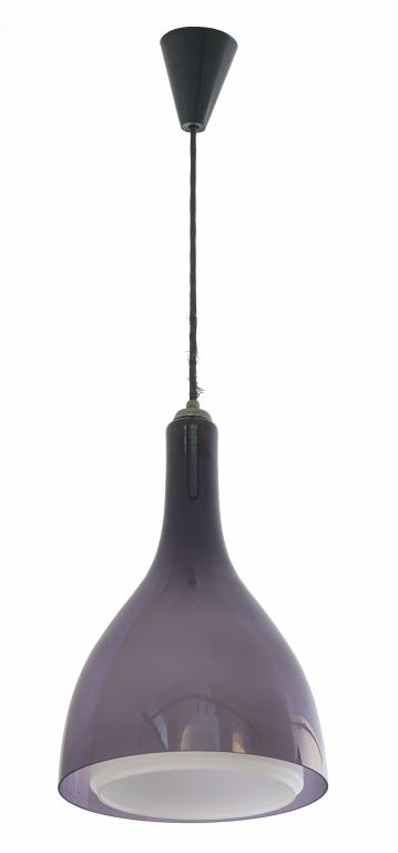 UNA LAMPADA A SOSPENSIONE, anni '60.Vetro ametista soffiato, vetro opalino...