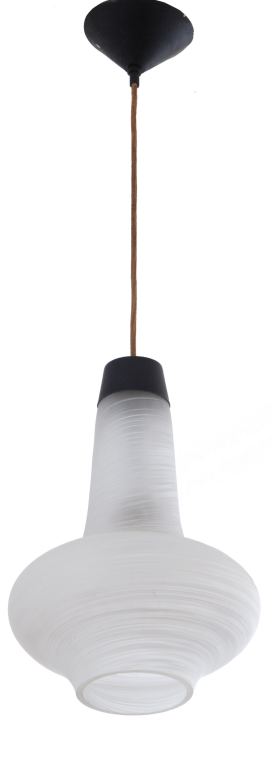 Lotto 4360 | TRE LAMPADE A SOSPENSIONE, anni "60. Vetro soffiato, alluminio laccato....