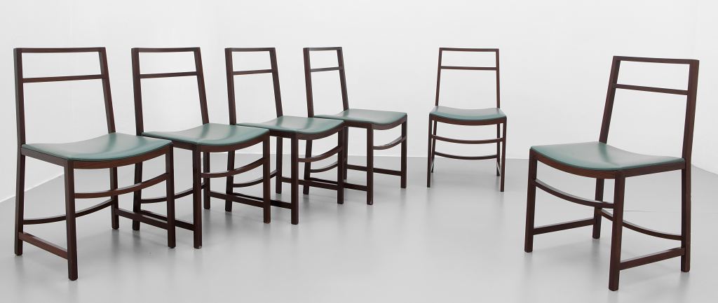 RENATO VENTURISei sedie per MIM, 1959. Legno di teak tinto all"anilina,...
