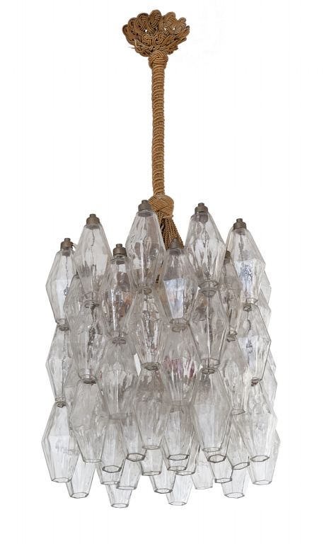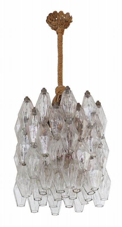 VENINI Una coppia di lampadari, anni '60. Vetro formato a poliedri. Altezza...