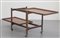UN CARRELLO CON VASSOI SCORREVOLI, anni '60. Legno di palissandro, piani...