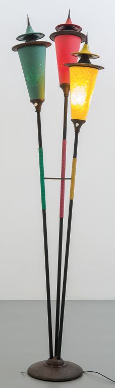 UNA LAMPADA DA TERRA, anni '60.. Ottone, tubo di ferro verniciato, plastica,...