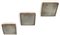 TRE PLAFONIERE, anni "60. Lamierino verniciato, ottone, vetro ghiacciato. Cm...