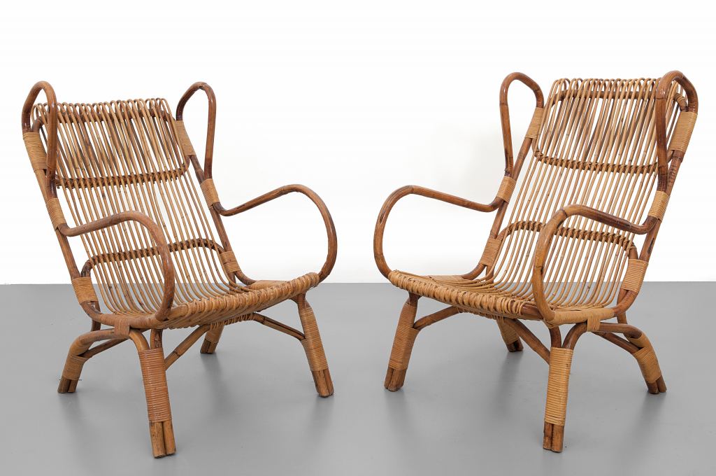 Lotto 4462 | DUE POLTRONE, anni "60. Malacca. Bambù e canna d"India. Altezza cm 98,...