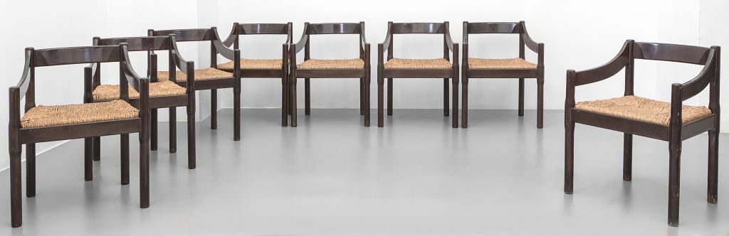 VICO MAGISTRETTI Un insieme di otto poltroncine "Carimate" per CASSINA, 1963....