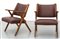 DUE POLTRONCINE, anni '60. Legno di faggio, ottone, imbottiture rivestite in...