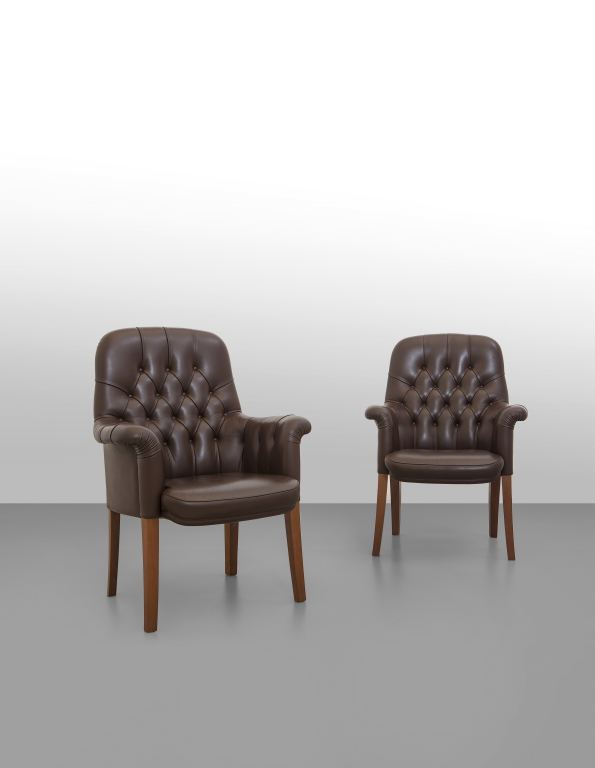 Lotto 4485 | POLTRONA FRAU (Editore)Due poltroncine, anni '60Strutture e gambe in legno,...