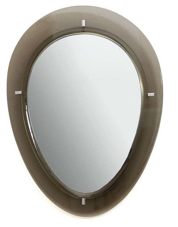 UNO SPECCHIO DA PARETE, anni '60. Cristallo colorato sagomato e molato,...