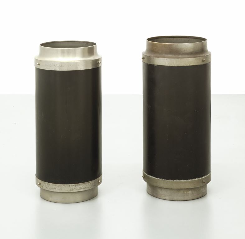SERGIO MAZZA Due portaombrelli per ARTEMIDE, anni "60. Ottone nichelato...