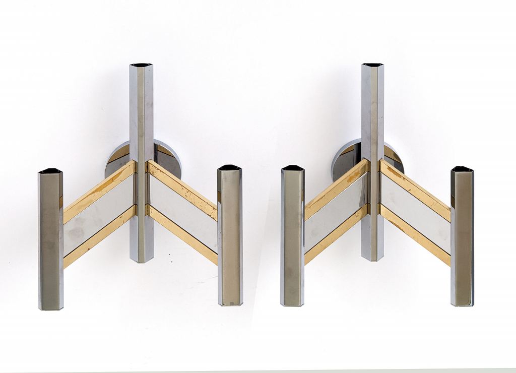 Lotto 4503 | SCIOLARI Due lampade a parete, anni '70. Ottone lucido e cromato. Etichette...