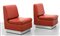 DUE POLTRONE, anni '60. Panforte rivestito di alluminio satinato, vinilpelle....