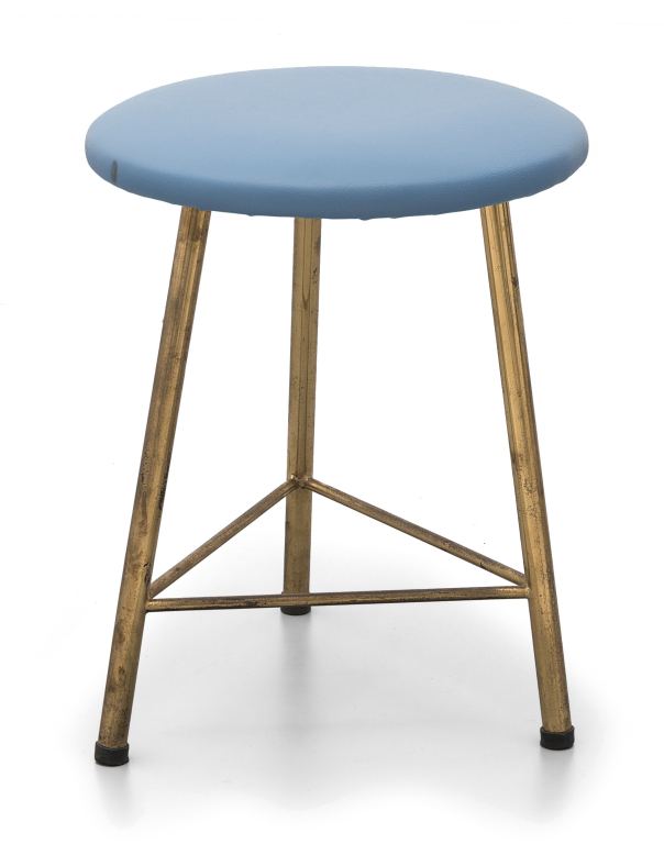UNO SGABELLO, anni '60.Ottone, seduta imbottita rivestita in...