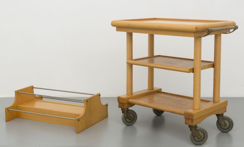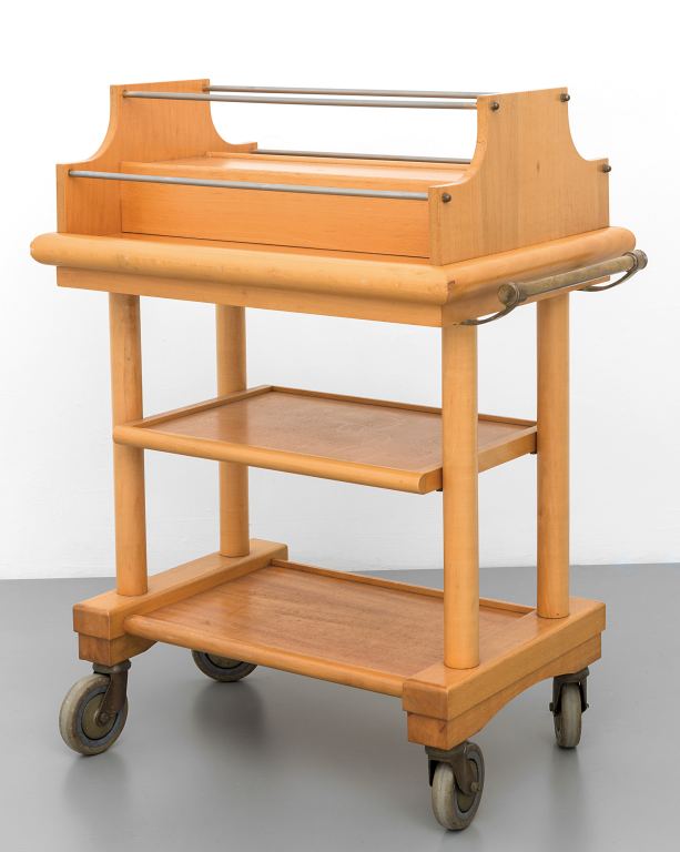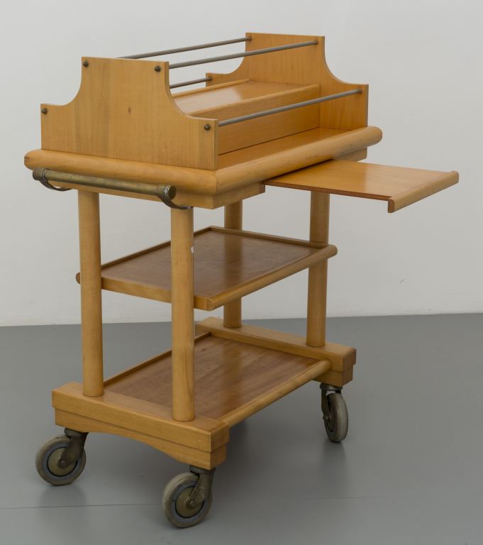 UN CARRELLO-BAR, anni '70. Legno di faggio, legno di frassino, legno...